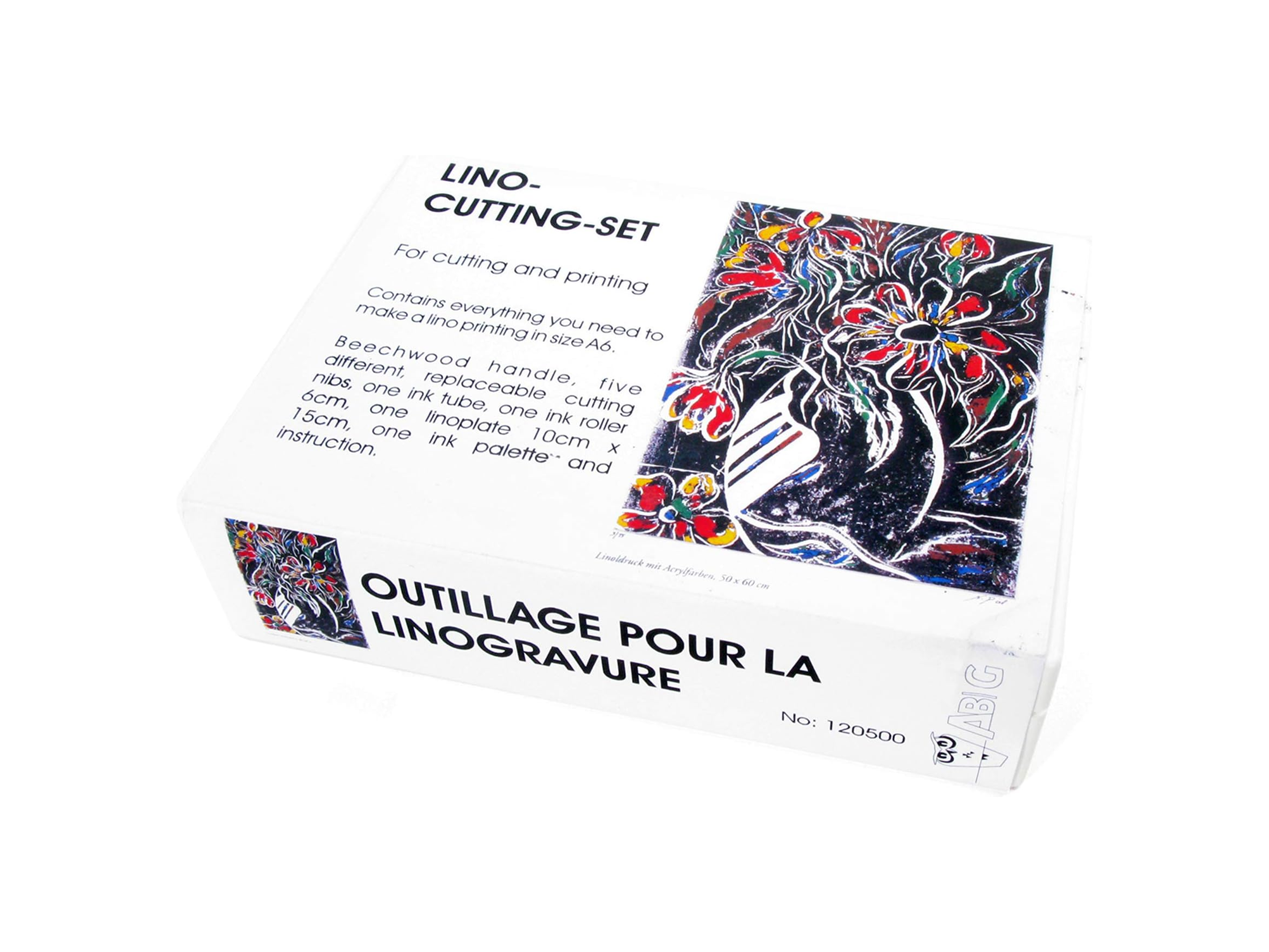 ABIG | Lino Linolschnitt Set komplett mit Werkzeug, Farbe & Linolplatte