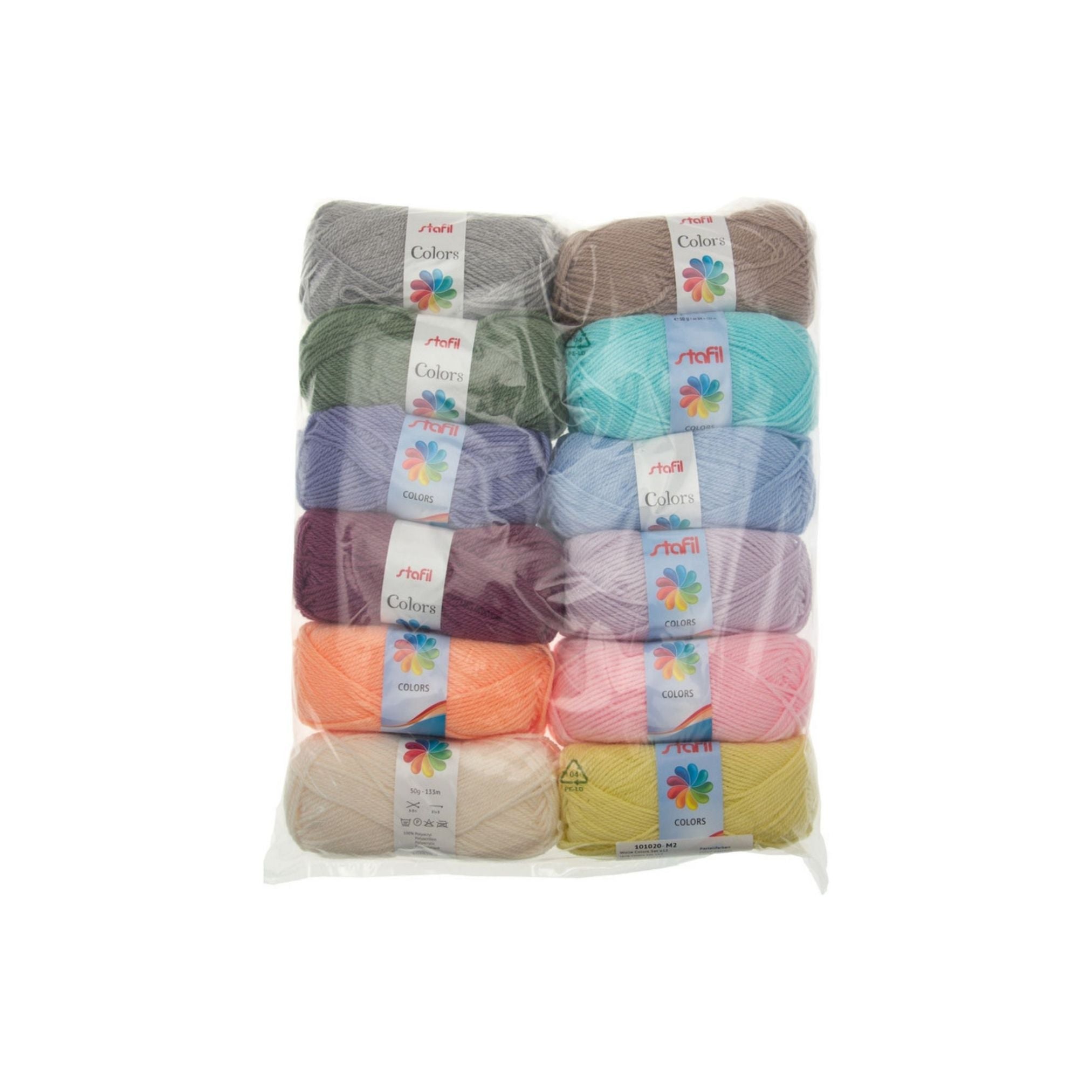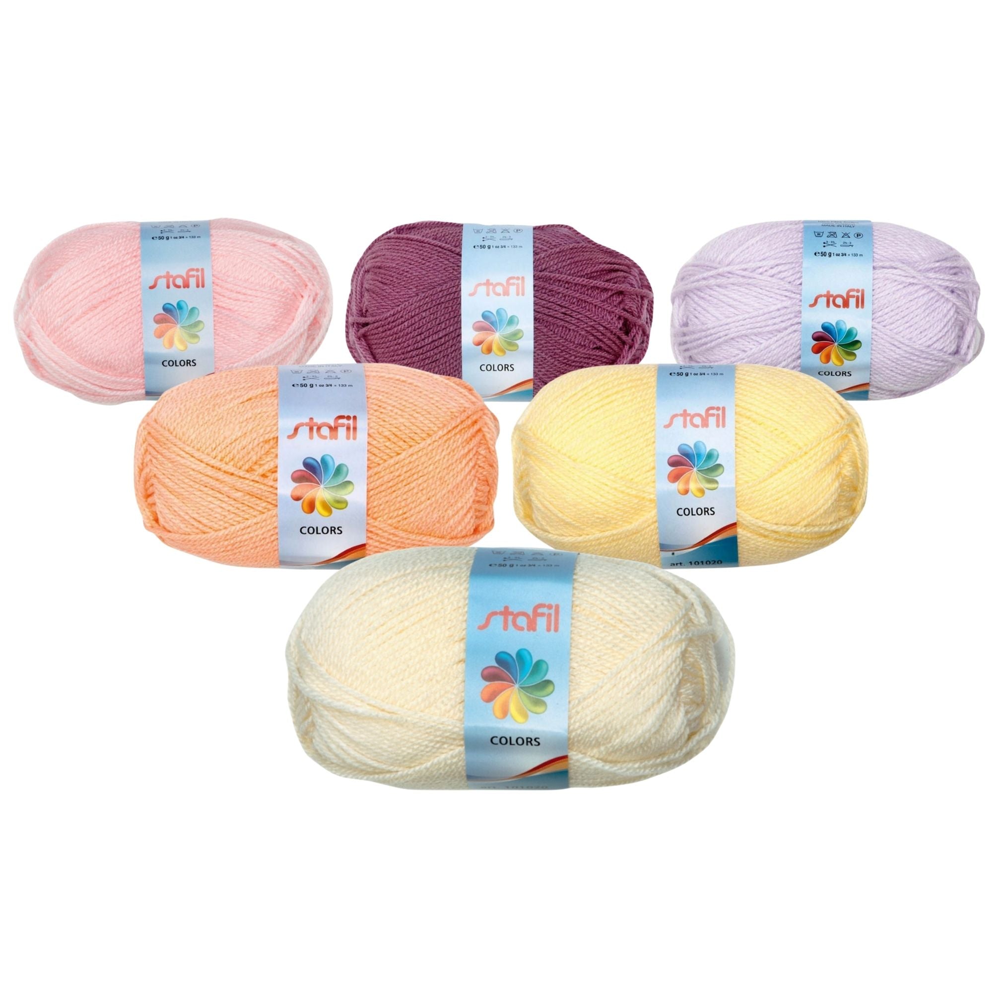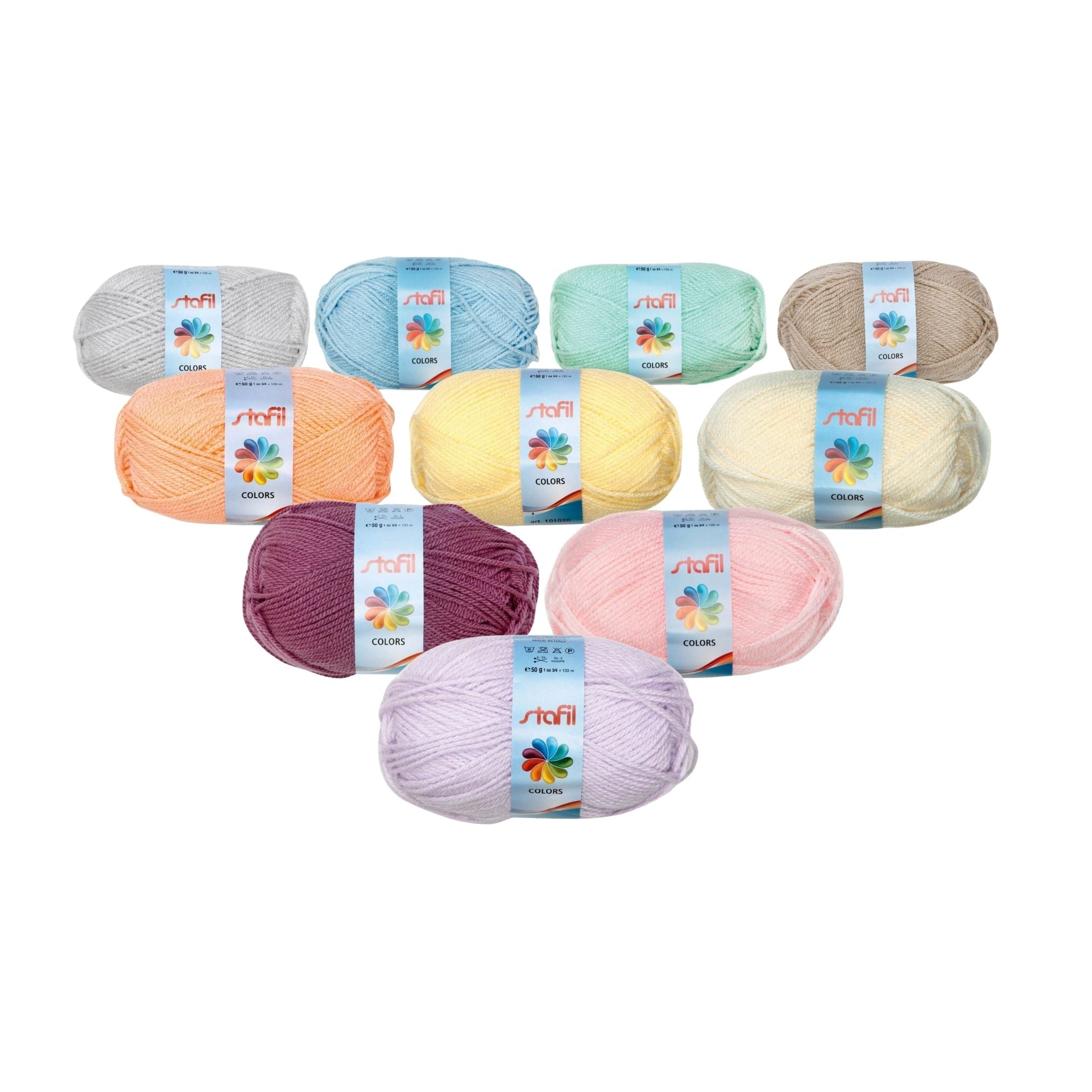 Stafil Schulwolle Strick- & Häkelwolle 50 g im 12er Set Pastellfarben. Ideal für Basteln, Stricken, Häkeln & kreative DIY-Projekte. 100% Polyacryl