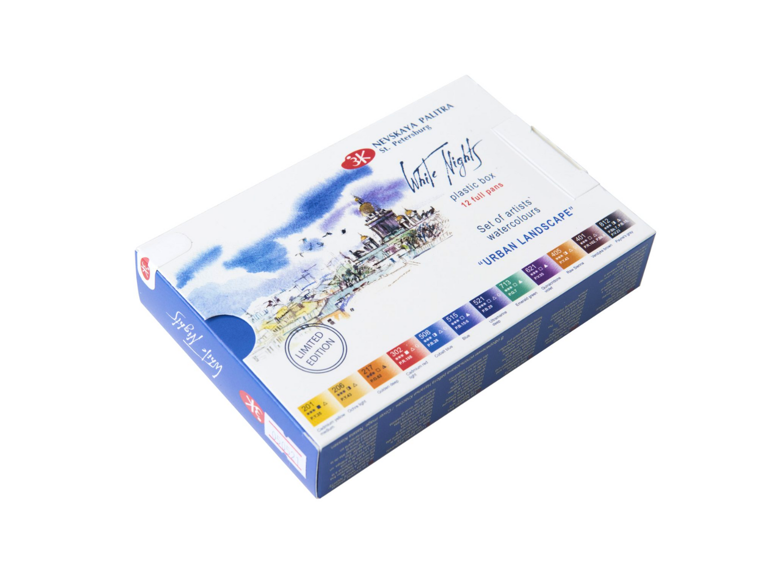 WHITE NIGHTS Extrafeine russische Künstler-Aquarellfarbe Urban Landscapes Edition im Kunstoffkasten, mit 12 ganzen Näpfchen.