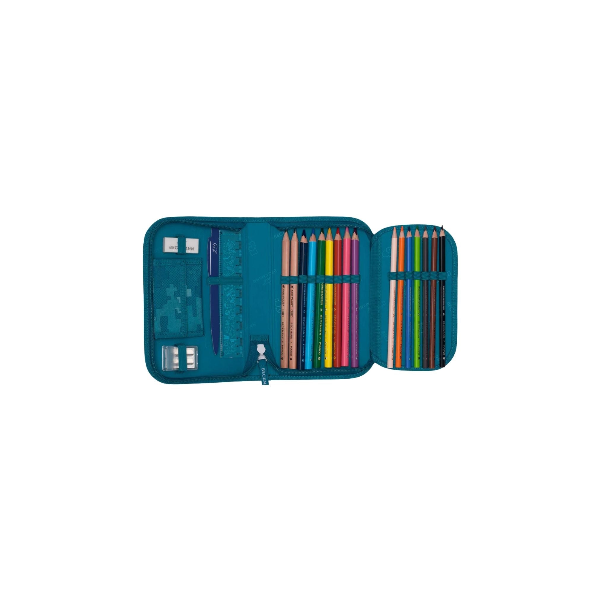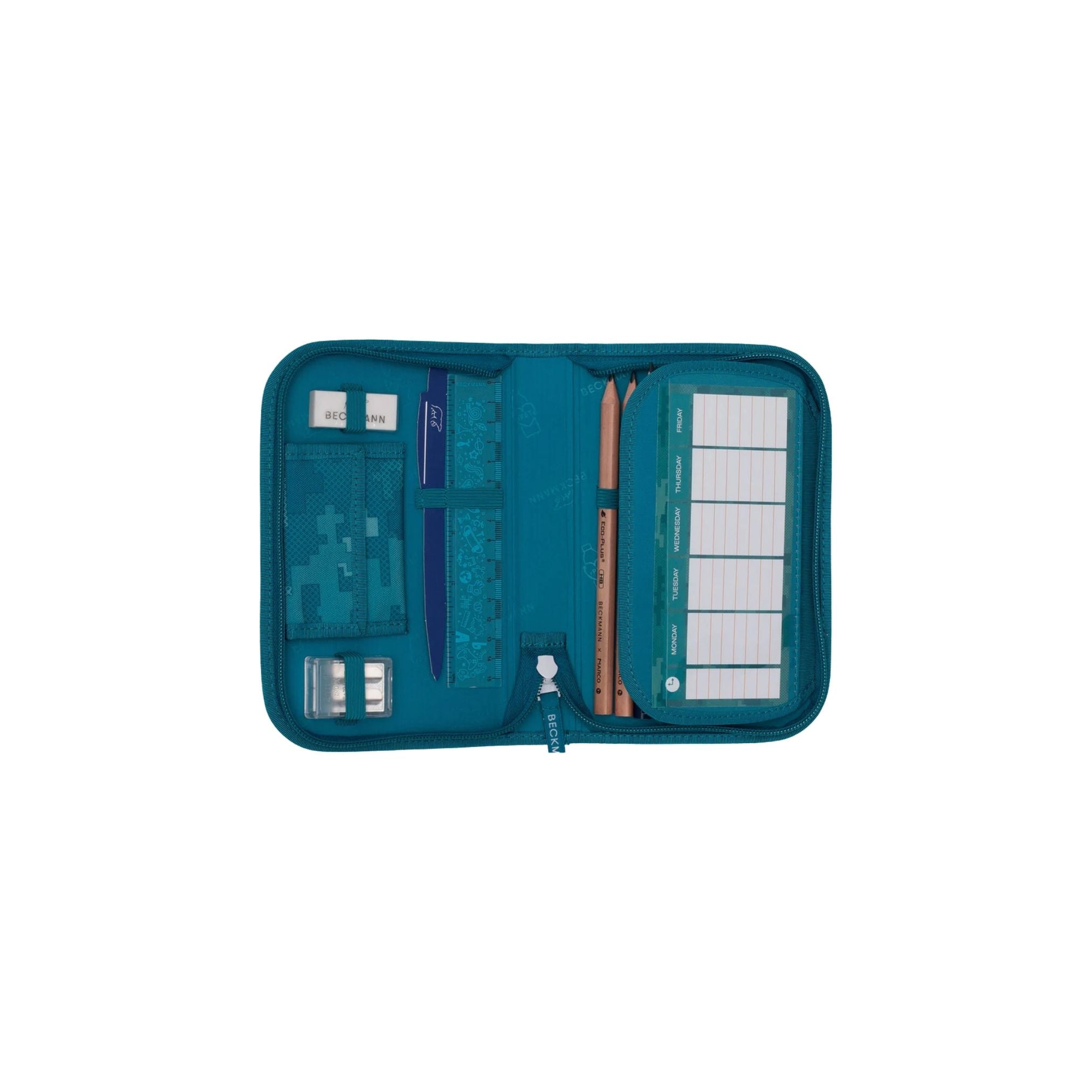 Schulrucksack, Schüleretui B 133 x H 195 x T 38 mm, 2 Klappen, 20-teilig gefüllt mit Marco by BECKMANN Produkten, 7 Farbstifte Jumbo, 7 Farbstifte, 2 Bleistifte Jumbo HB, Massstab 17 cm, Radierer, Doppelspitzer und Brieftasche, Schlamperetui unbestückt B 220 x H 100 x T 50 mm, Sportrucksack Volumen 12 l, B 230 x H 360 x T 150 mm, 4 oder 5 Kletties zum Auswechseln in praktischem Button Bag und Regenhülle.