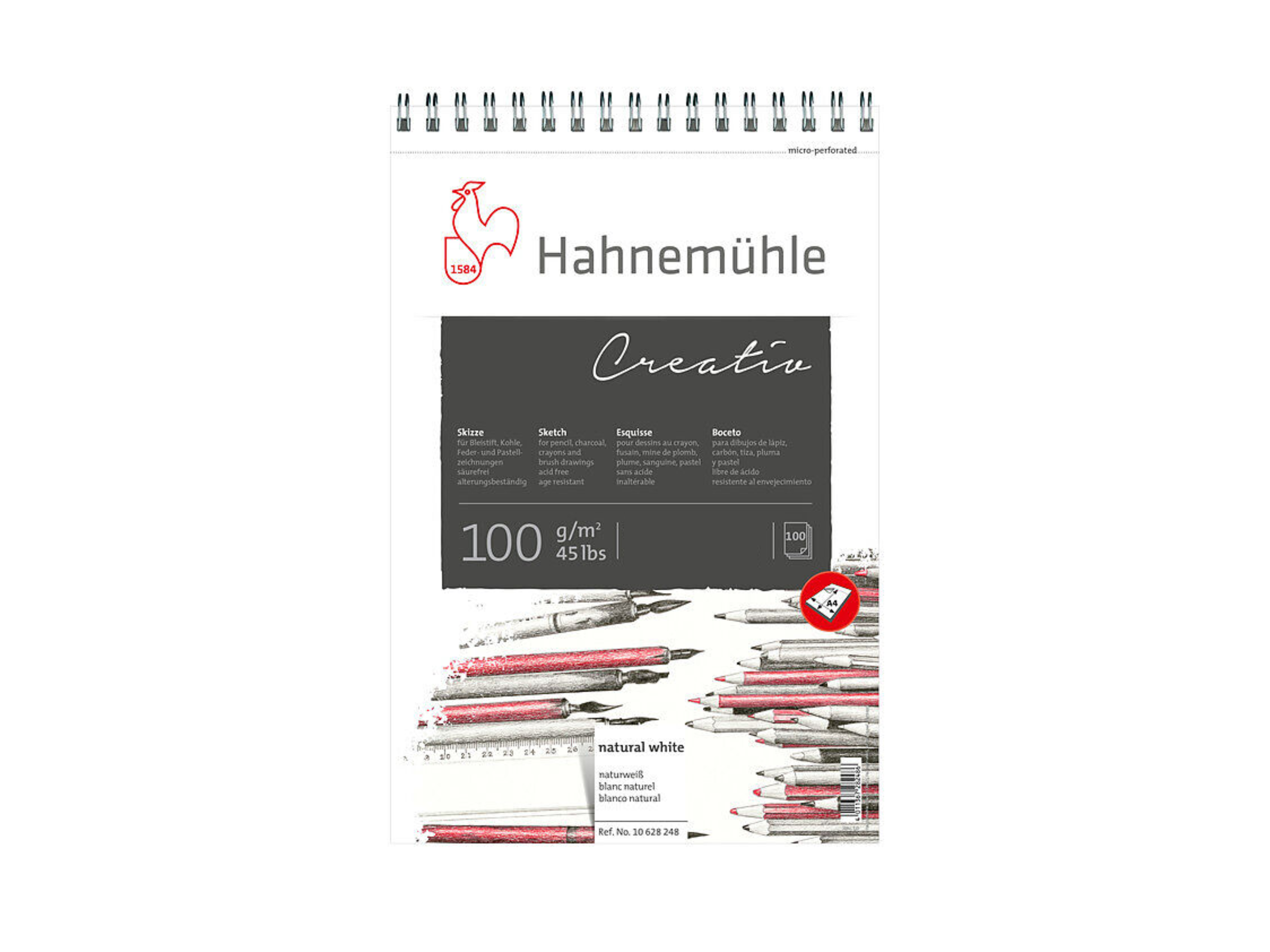 Das Creativ Zeichenpapier bietet dir eine weiche, leicht strukturierte Oberfläche und ein angenehmes Papierweiß, das Farben sanft und natürlich wirken lässt. Dank seines hohen Volumens eignet es sich perfekt für alle Trockentechniken – egal ob Skizzen, Illustrationen oder feine Schraffuren.