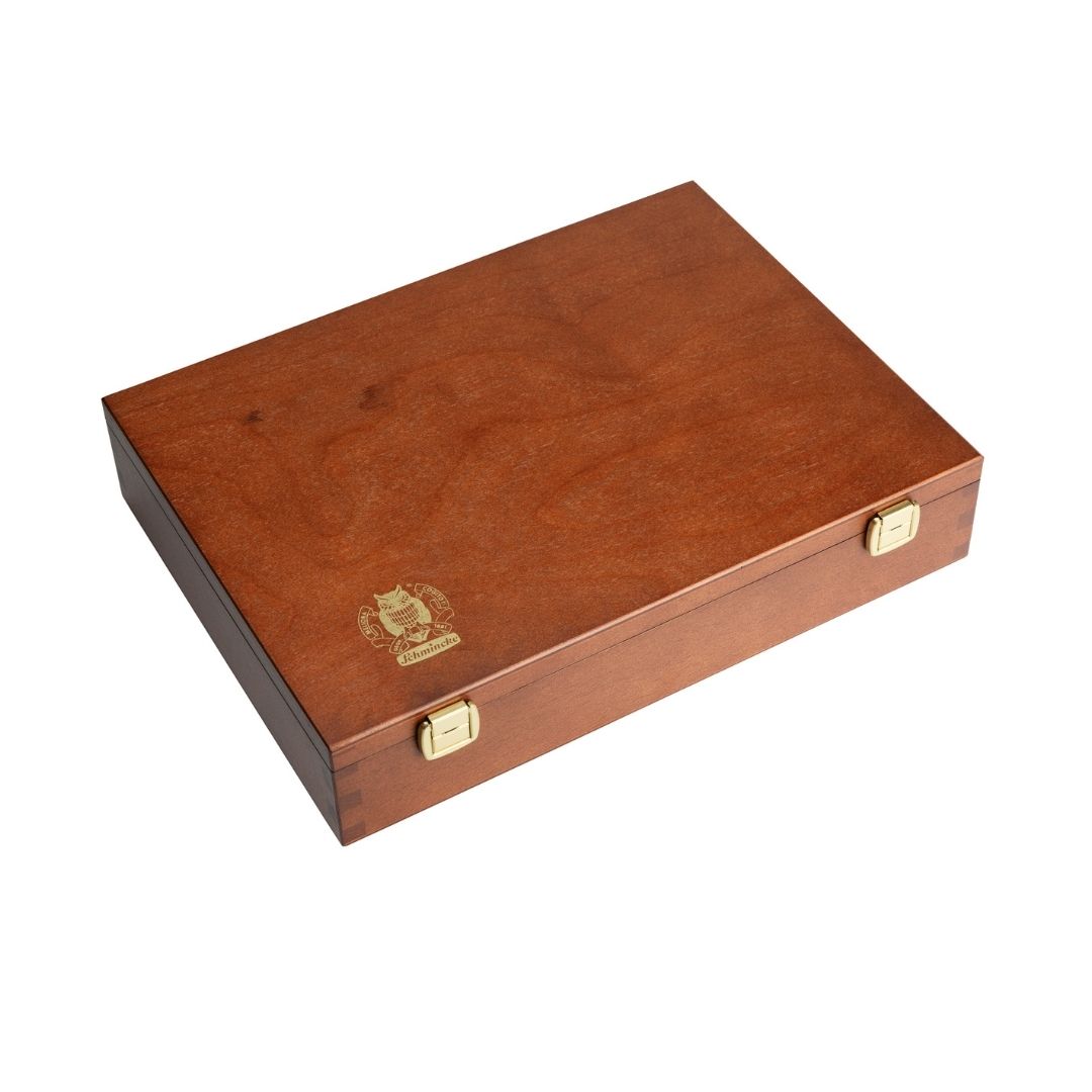 Edler Holzkasten mit 10 Tuben der feinsten PRIMAcryl® Farben und viel Malzubehör von Schmincke mit einem umfangreichen Sortiment mit 10 Farbtönen feinster Künstler-Acrylfarben in 35 ml Tuben.