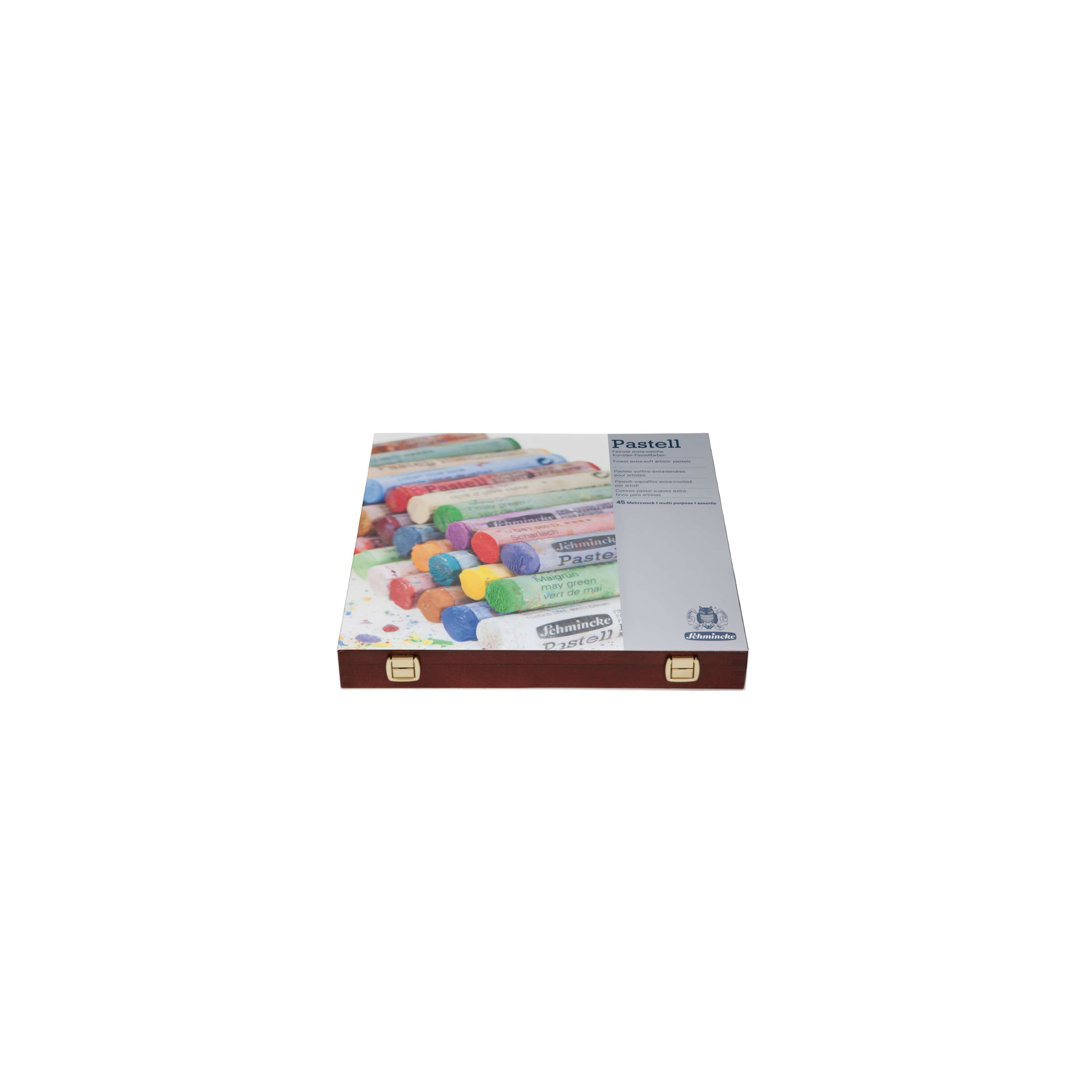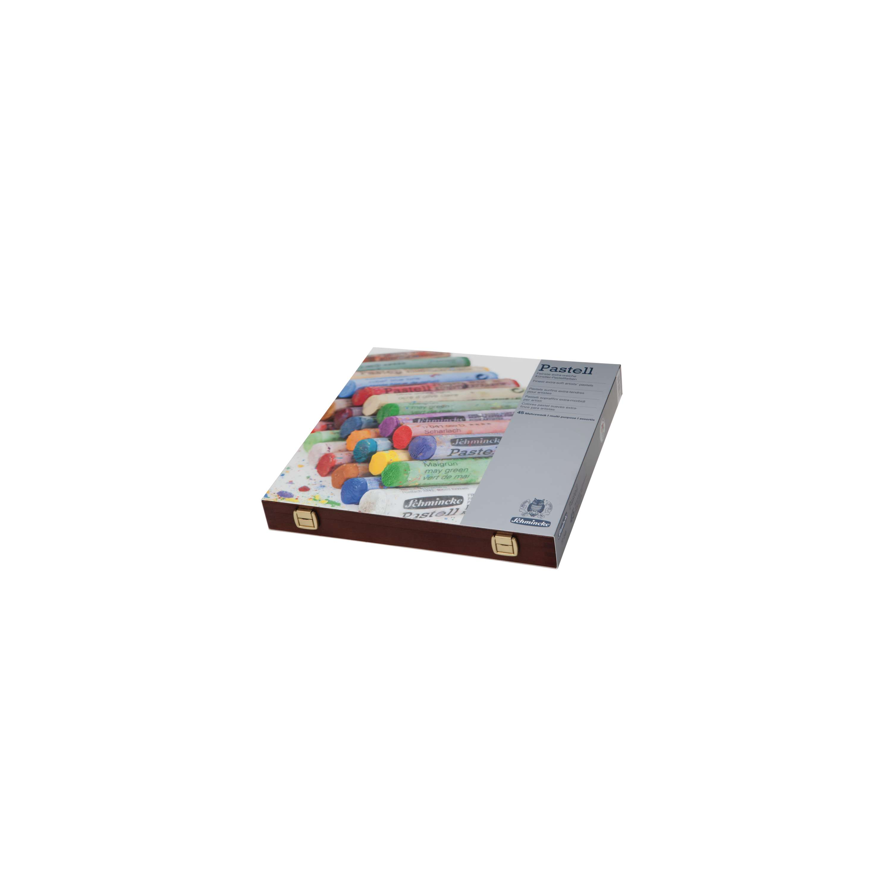 Dunkler Holzkasten Mehrzweck, mit 45 feinsten Pastellen in breitgefächerter Farbauswahl, (L x B x H 29,6 x 29,6 x 3,8 cm). Umfangreiches Sortiment mit Farbabstufungen für alle Themen und ideal als Geschenkset in bester, samt-matter Schmincke Pastell-Qualität.