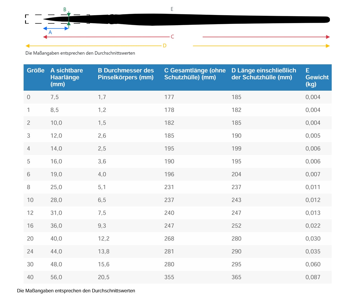 Der Pinsel eignet sich ideal für Aquarellmalerei, Hinterglas- und Seidenmalerei, sowie für Design, Grafik und Retusche. Die Silberzwinge stabilisiert den Pinselkopf, während der kurze schwarzpolierte Esagonalstiel ergonomisch in der Hand liegt.
