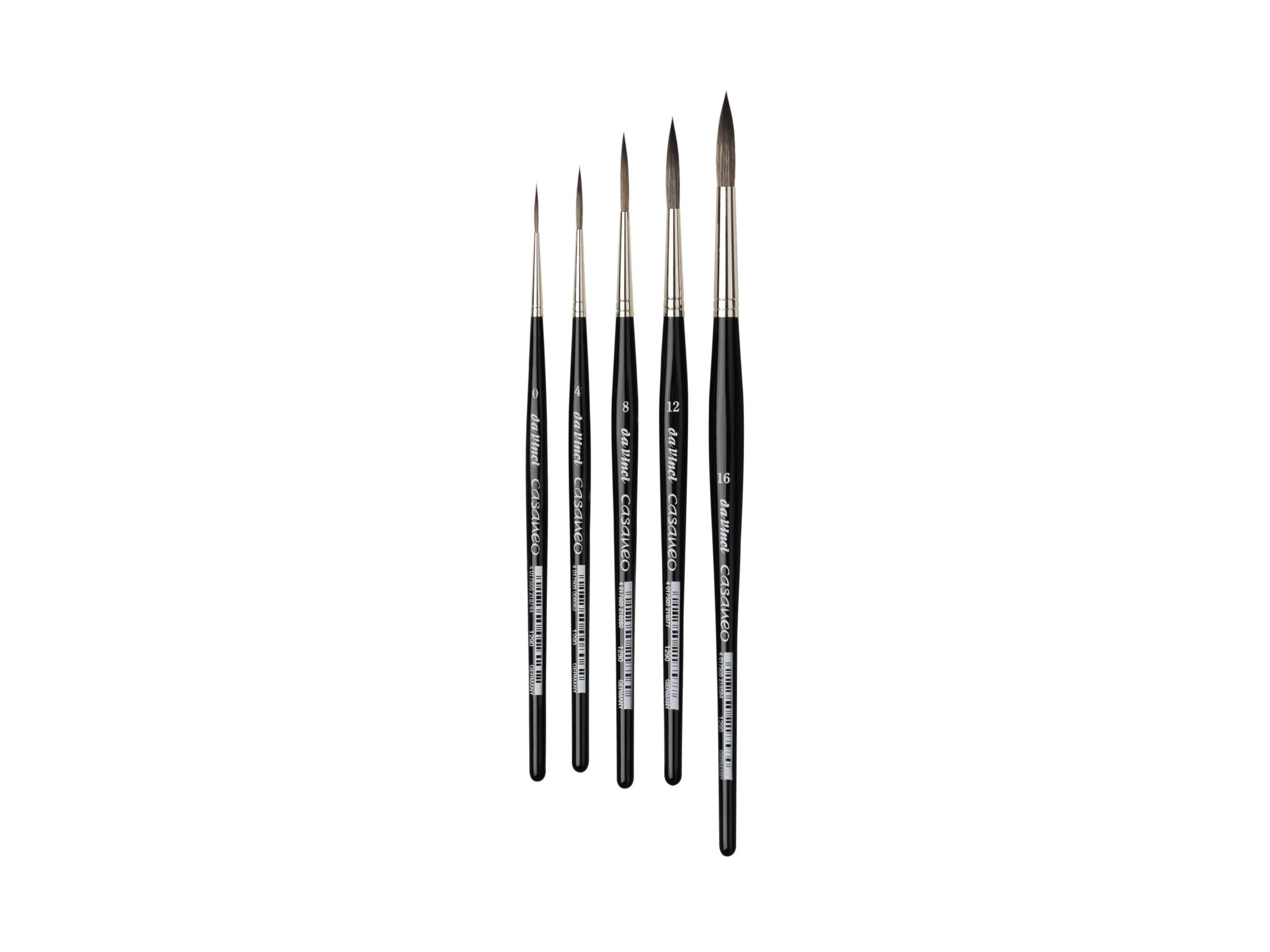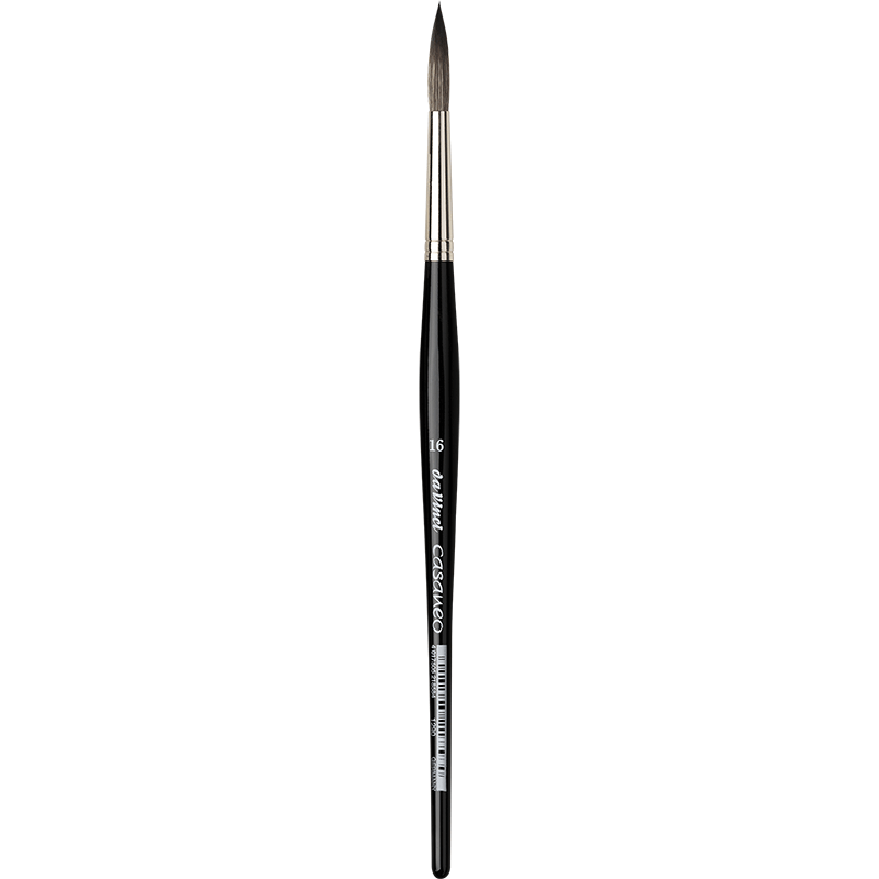 Der da Vinci Casaneo Aquarellpinsel Schlepper (Serie 1290) verfügt über extraweiche Synthetikfasern, die mittellang und spitz gebunden sind. Dank der außergewöhnlichen Elastizität und der extrem hohen Farbaufnahmefähigkeit lassen sich sowohl absolut deckende als auch transparent-seidige Farbaufträge erzielen.