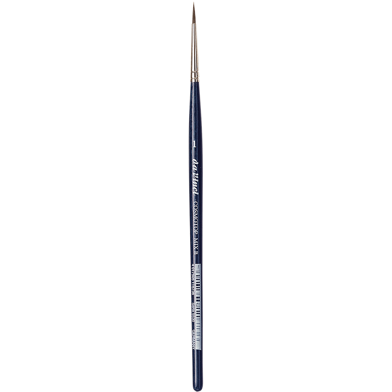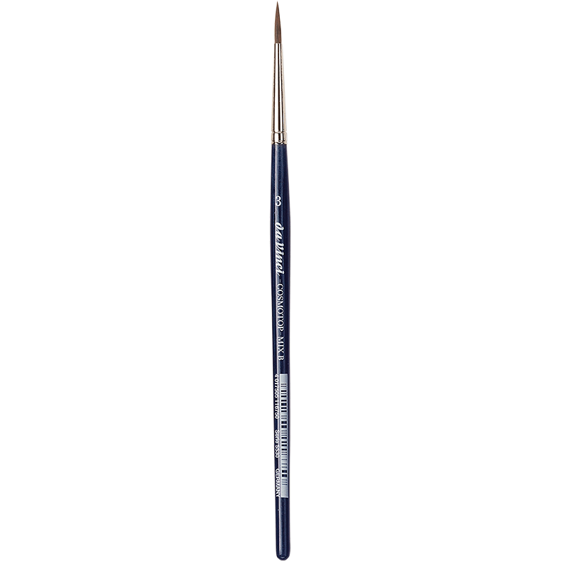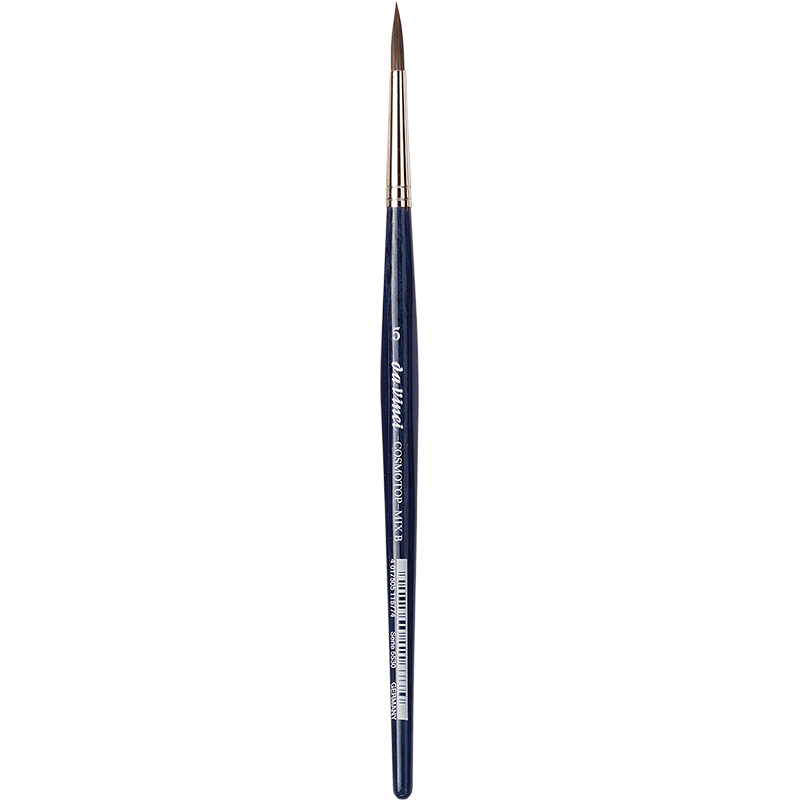 Die Silberzwinge sorgt für langlebige Haltbarkeit, während die kurzen, blaulasierten Esagonalstiele angenehm in der Hand liegen und präzises Arbeiten ermöglichen. Der COSMOTOP-MIX ist ideal für Aquarellmalerei, aber auch für alle anderen wässrigen Farben hervorragend geeignet.