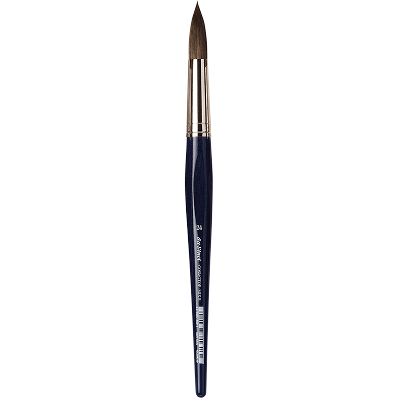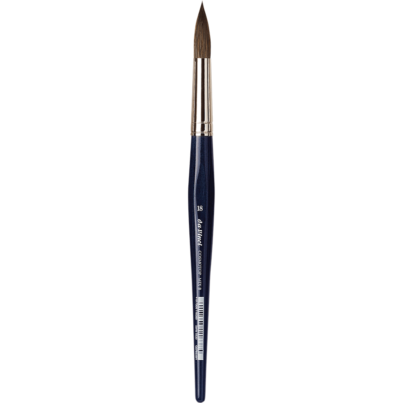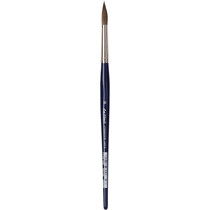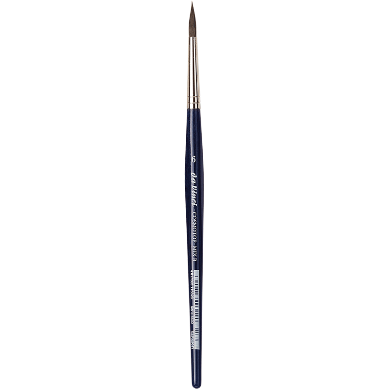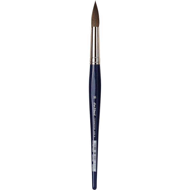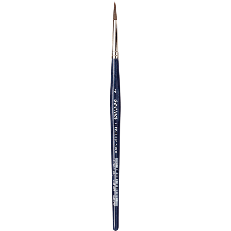 Der da Vinci COSMOTOP-MIX Aquarellpinsel Rund Serie 5530 ist die perfekte Wahl für Künstler, die hochwertige Ergebnisse mit einem vielseitigen Pinsel erzielen möchten. Seine innovative Mischung aus Naturhaaren (Marder, Feh, Iltis) und hoch elastischen Kunstfasern verbindet das Beste aus zwei Welten: die saugfähigen Eigenschaften natürlicher Haare mit der Formstabilität synthetischer Fasern.