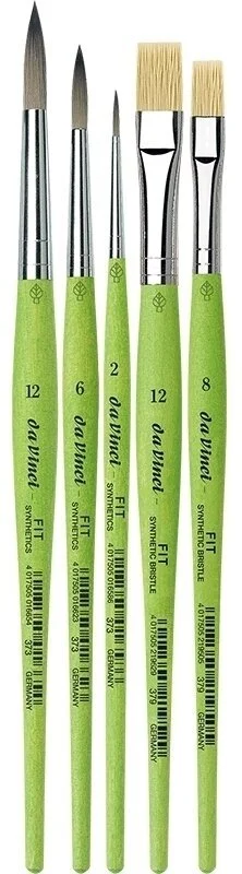 Das da Vinci FIT SYNTHETICS & SYNTHETICS BRISTLE Pinsel-Set Serie 4217 besteht aus fünf hochwertigen Allroundpinseln in den Größen 2, 6, 8, 12 und 12 (Serie 373 & 379).