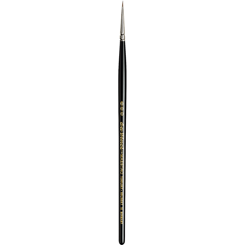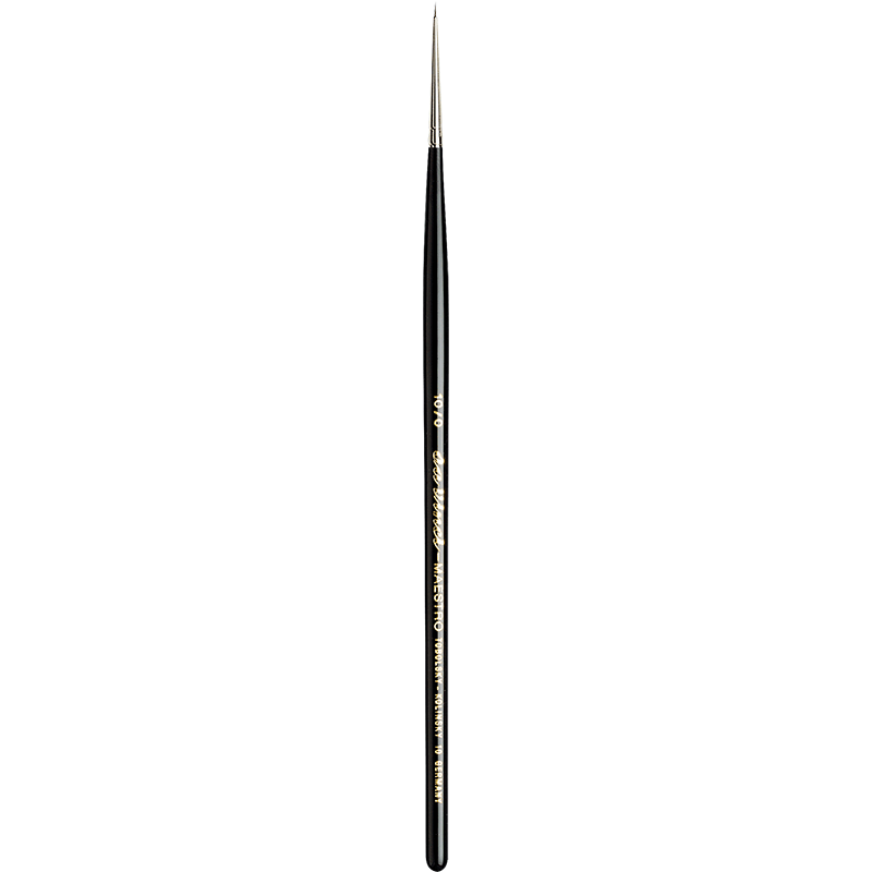 Mit seiner Silberzwinge und dem kurzpolierten, schwarz lackierten Stiel liegt der Pinsel angenehm in der Hand und ermöglicht präzises Arbeiten bei feinen Linien ebenso wie bei flächigen Farbaufträgen. Er eignet sich hervorragend für Aquarell-, Gouache- und Miniaturmalerei sowie für Design, Grafik und Restaurierung.