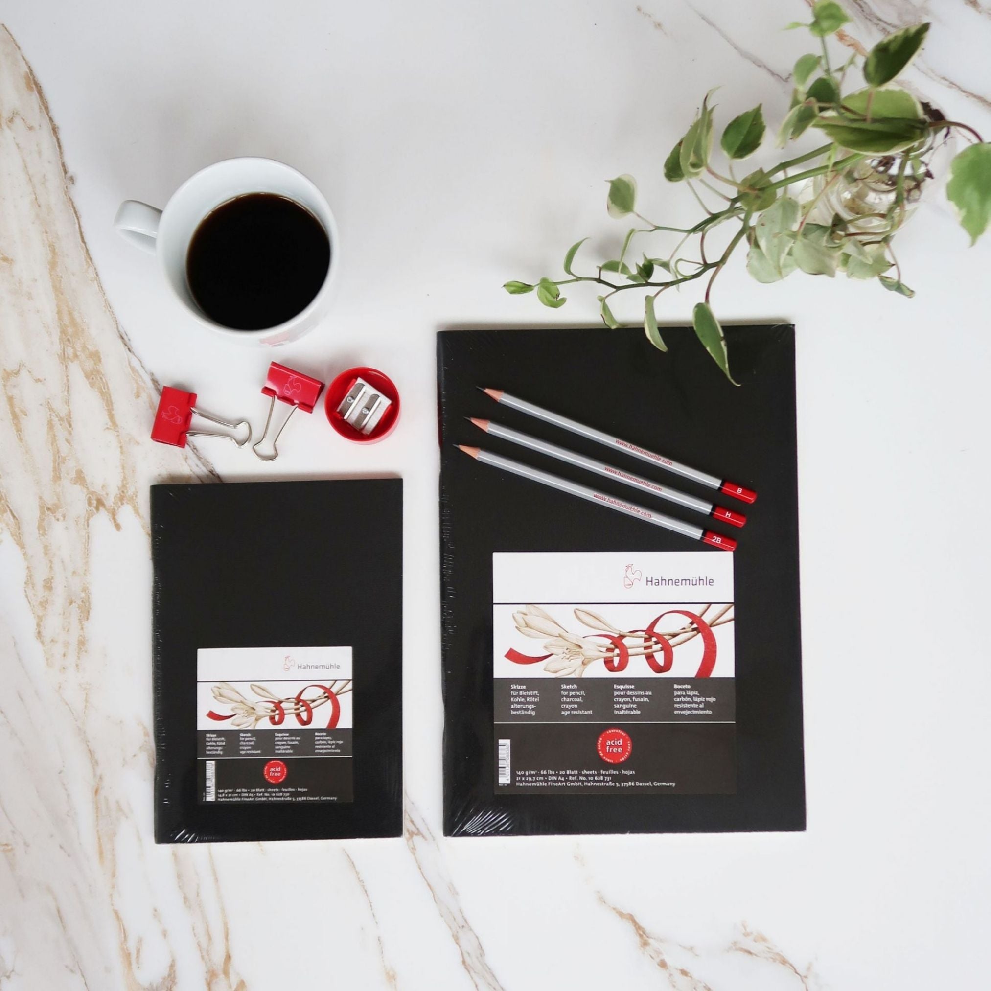 Hahnemühle Sketch Booklet ist ein schlankes Skizzenheft mit naturweißem Zeichenpapier, das sich ideal für den täglichen Einsatz eignet. Mit seinem schwarzen, fein gemaserten Umschlag verbindet es schlichte Eleganz mit praktischer Flexibilität, perfekt für unterwegs und spontane Ideen.