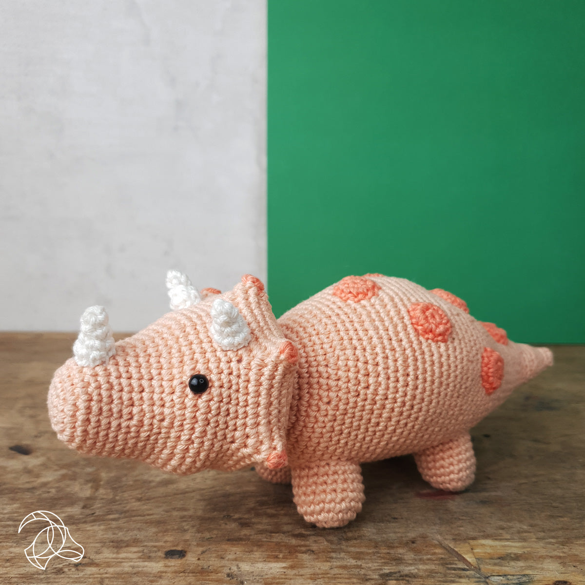 Triceratops ca. 24 cm lang, kompakt und stabil gehäkelt