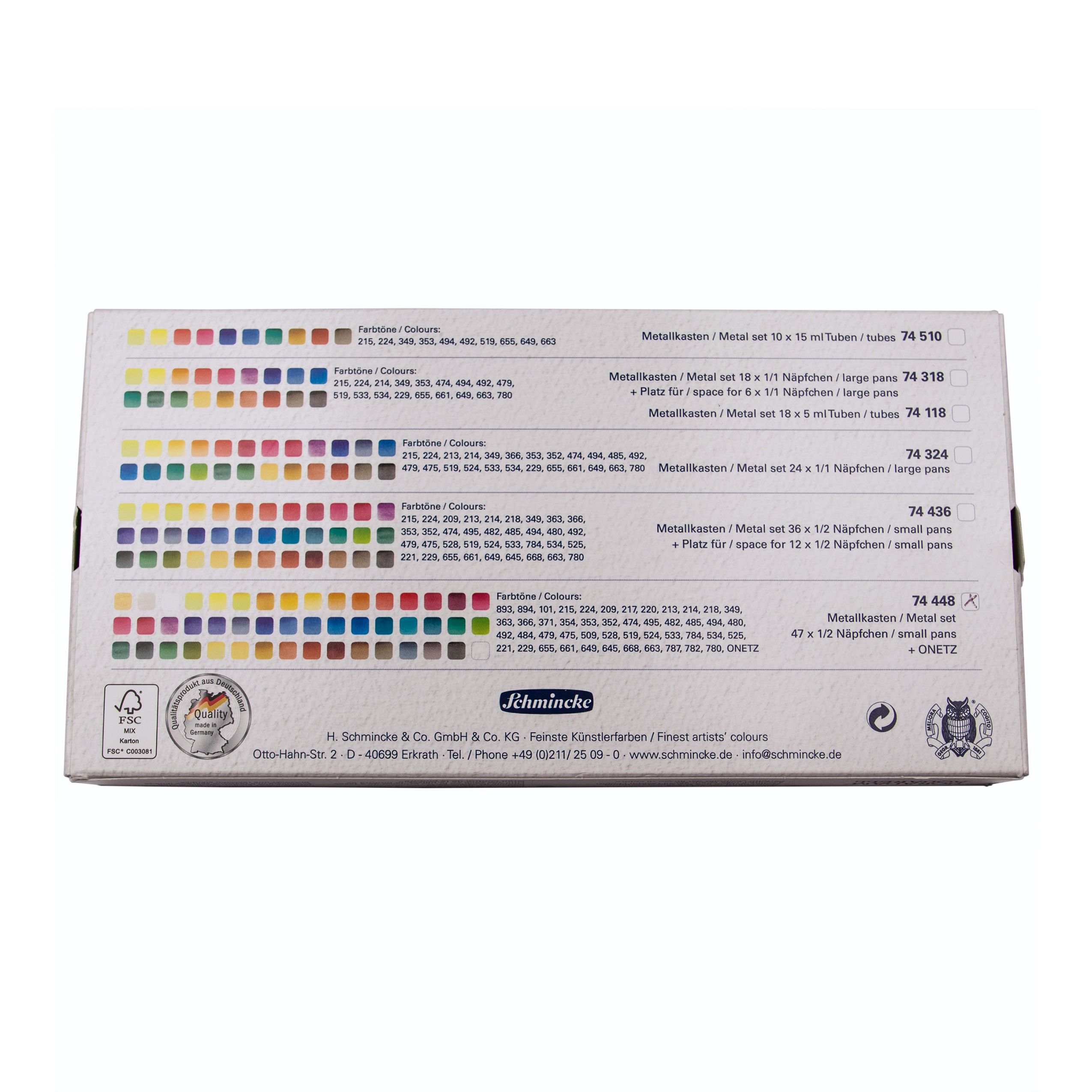 Schmincke stellt seit 1881 beste, feinste Künstlerfarben Made in Germany her. Das Sortiment beinhaltet Aquarellfarben, Acrylfarben, Ölfarben, Pastelle, Gouachefarben, Airbrushfarben und vieles mehr.
