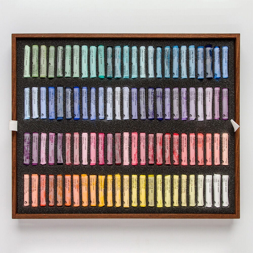 Die Pastellfarbe besteht lediglich aus den besten Künstlerpigmenten. Der Bindemittelanteil ist so gering, dass die mittelfein geriebenen Pigmente gerade noch einen stabilen Verbund bekommen. Ein maschinelles Produzieren der Pastelle ist aufgrund der besonders feinen Rezepturen nicht möglich – die kostbaren Stifte könnten zerbrechen. Es wird höchster Wert gelegt auf die garantierte Konstanz von Qualität und Weichheit, d.h. der Künstler kann sicher sein, jederzeit seinen Farbton in gleicher Qualität vorzufinden.