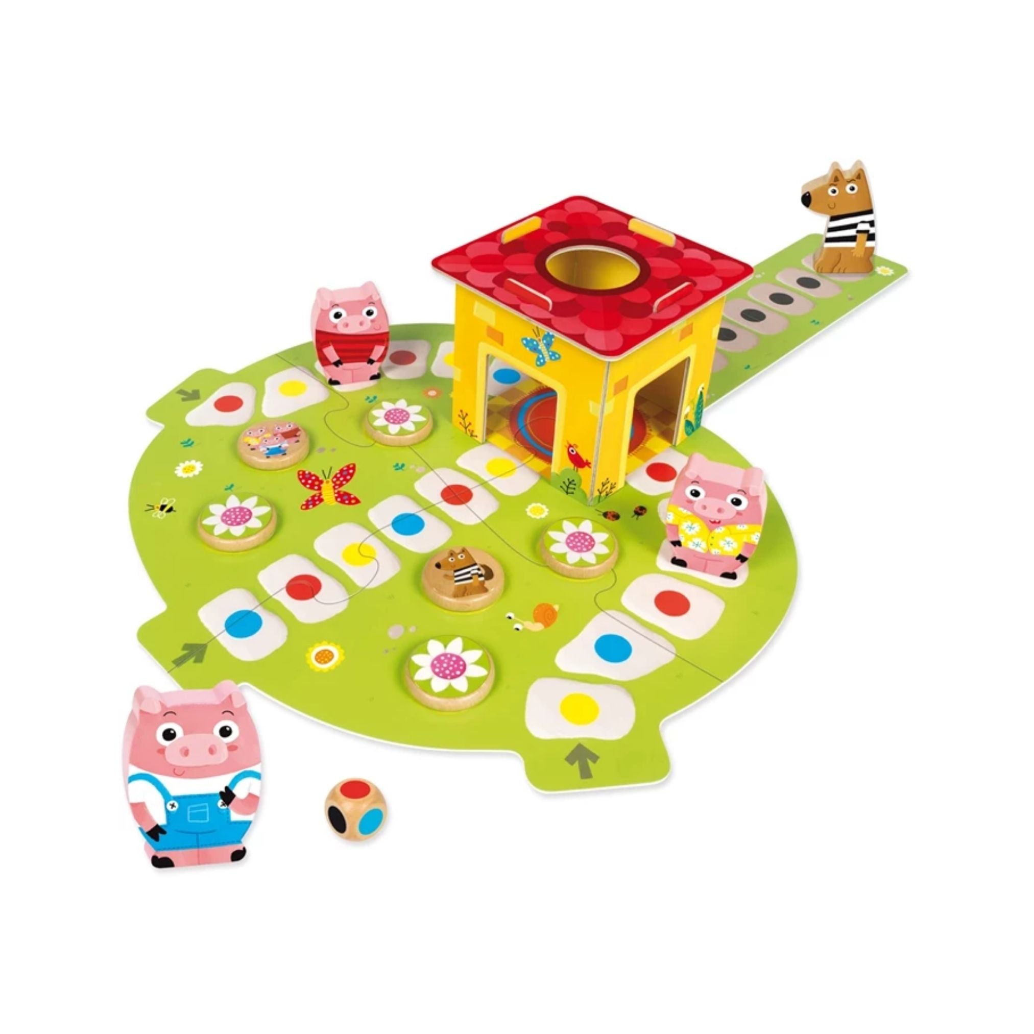 Das liebevoll gestaltete Vorschulspiel „Drei kleine Schweinchen“ sorgt für fröhlichen Spiel- und Lernerfolg bei Kindern ab 2 Jahren. In diesem kooperativen Holz-Spiel arbeiten 1 bis 4 Spieler zusammen, um die drei kleinen Schweinchen sicher ins Haus zu bringen, bevor der Wolf sie einholt.