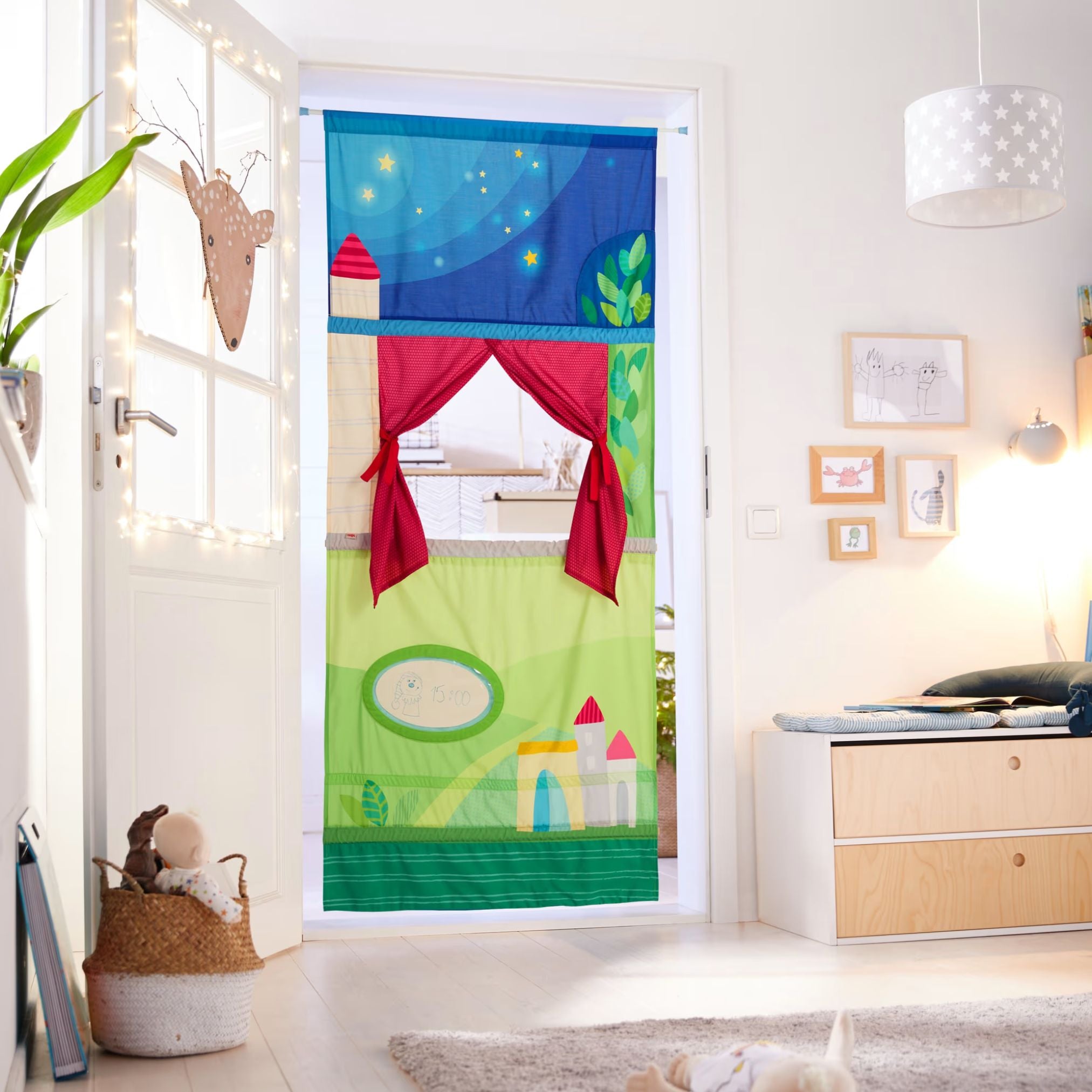 Das Türtheater bietet Kindern eine besondere Bühne für ihre Handpuppen‑Aufführungen und kreativen Geschichten. Ob zuhause, im Kindergarten oder in der Vorschule - das Theater lässt sich schnell aufbauen und verwandelt eine Türöffnung in eine kleine Bühne.