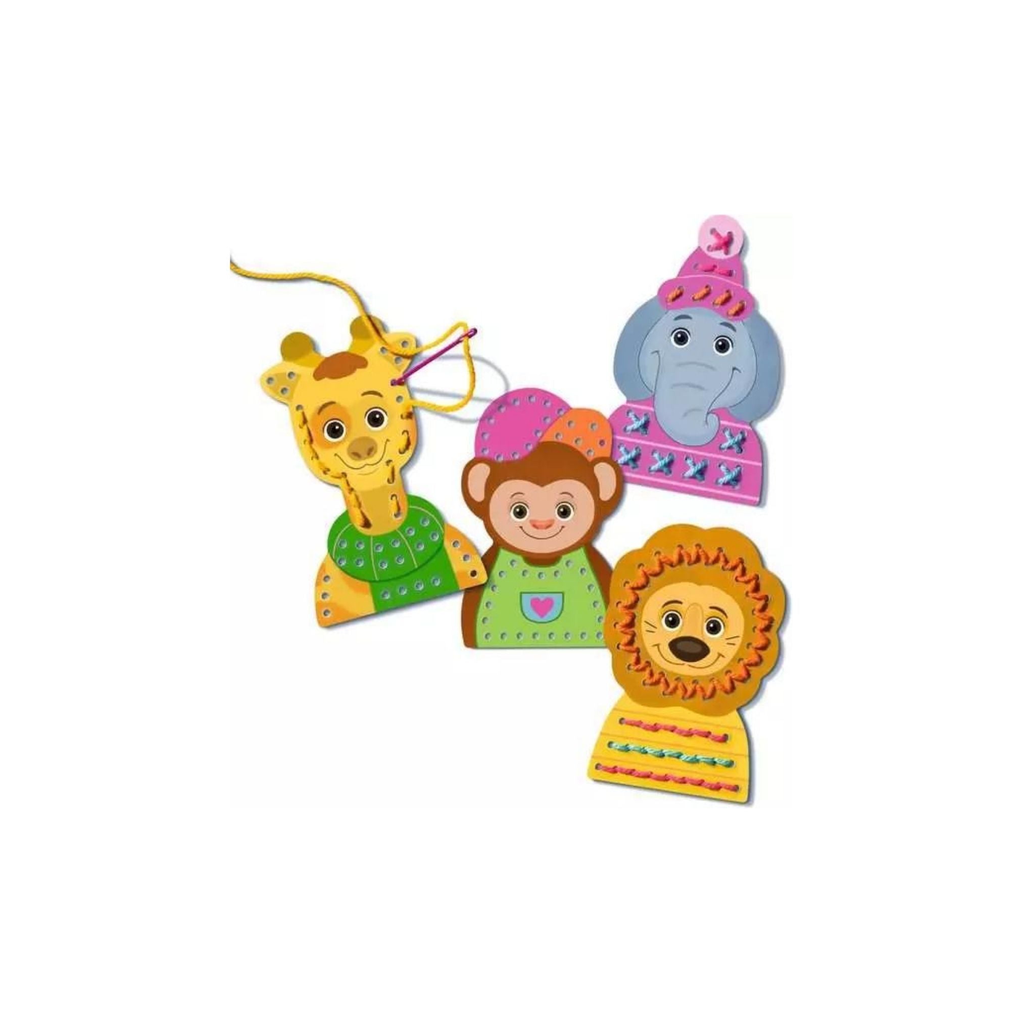 Dieses Bastelset ist ein liebevoll zusammengestelltes DIY-Kreativset, das Kindern ab 4 Jahren einen spielerischen Einstieg in die Grundtechnik des Stickens ermöglicht. Anhand von 4 vorgestanzten Tier-Motiven wie Löwe, Elefant, Affe und Giraffe lernen Kinder Schritt für Schritt, wie sie mit Wollfäden und einer kindgerechten Nadel einfache Stiche setzen und hübsche Ergebnisse erzielen.