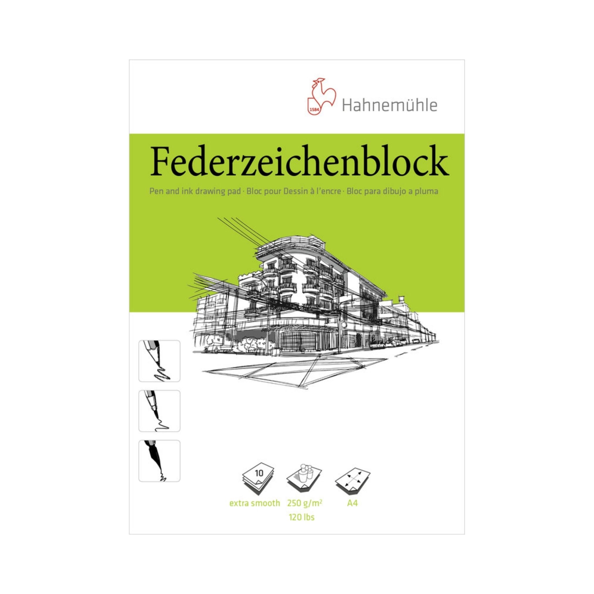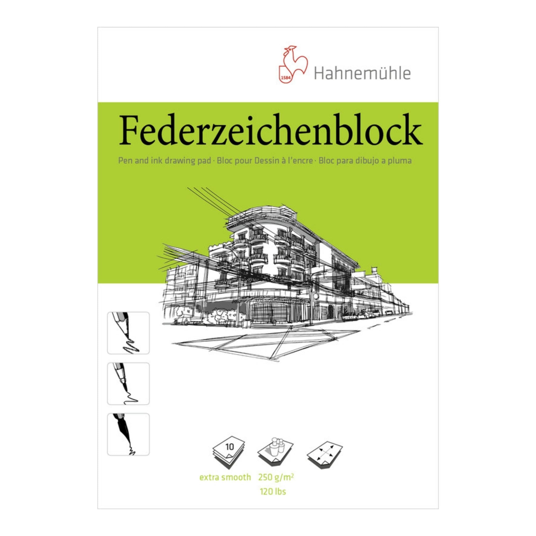 Der Hahnemühle Federzeichenblock ist ein speziell entwickelter Zeichenblock für präzise Feder- und Tuschearbeiten sowie technische Zeichnungen. Sein extrem glattes, 250 g/m² schweres Papier sorgt für eine gleichmäßige Strichführung und hohe Radier- und Linienpräzision, ideal für alle Zeichentechniken mit feinsten Details.
