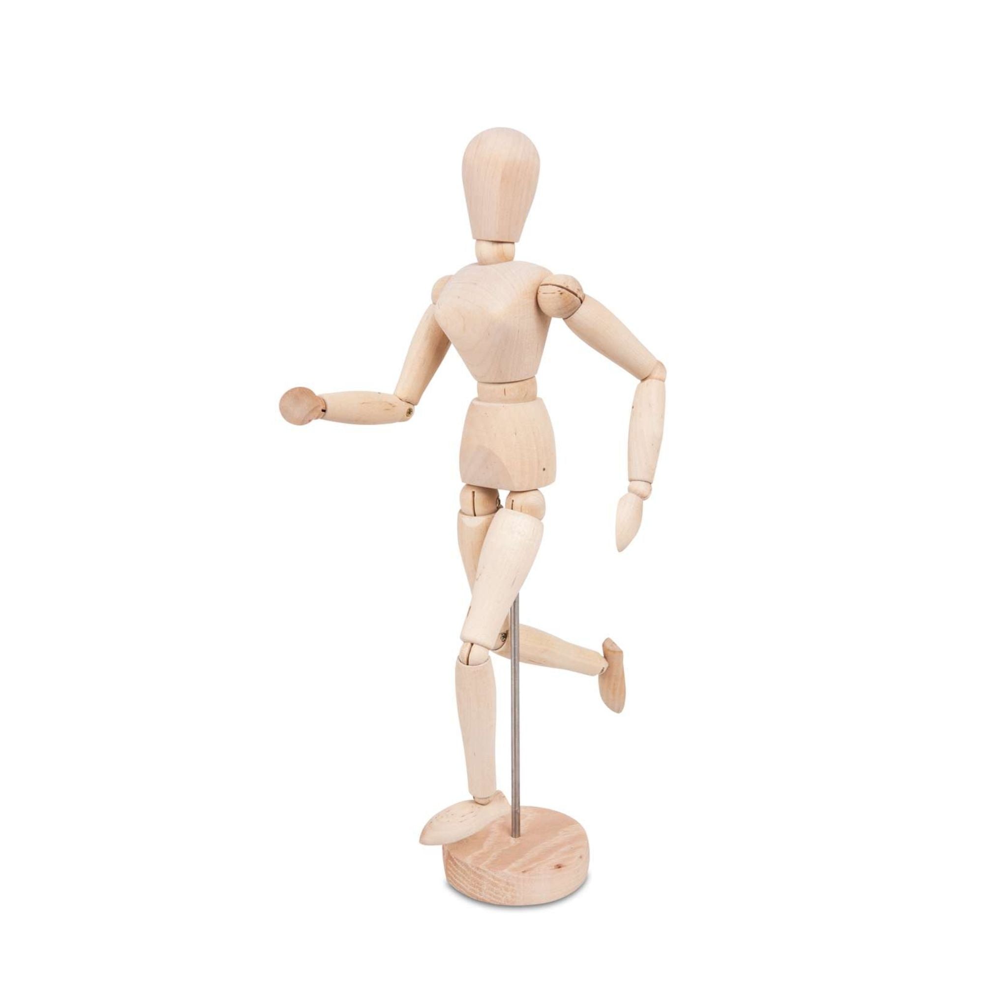 Honsell Modellpuppe weiblich aus Holz, 30 cm hoch, naturbelassen & beweglich - perfekte Zeichenhilfe für Künstler, Anatomie-Studien & Skizzen.
