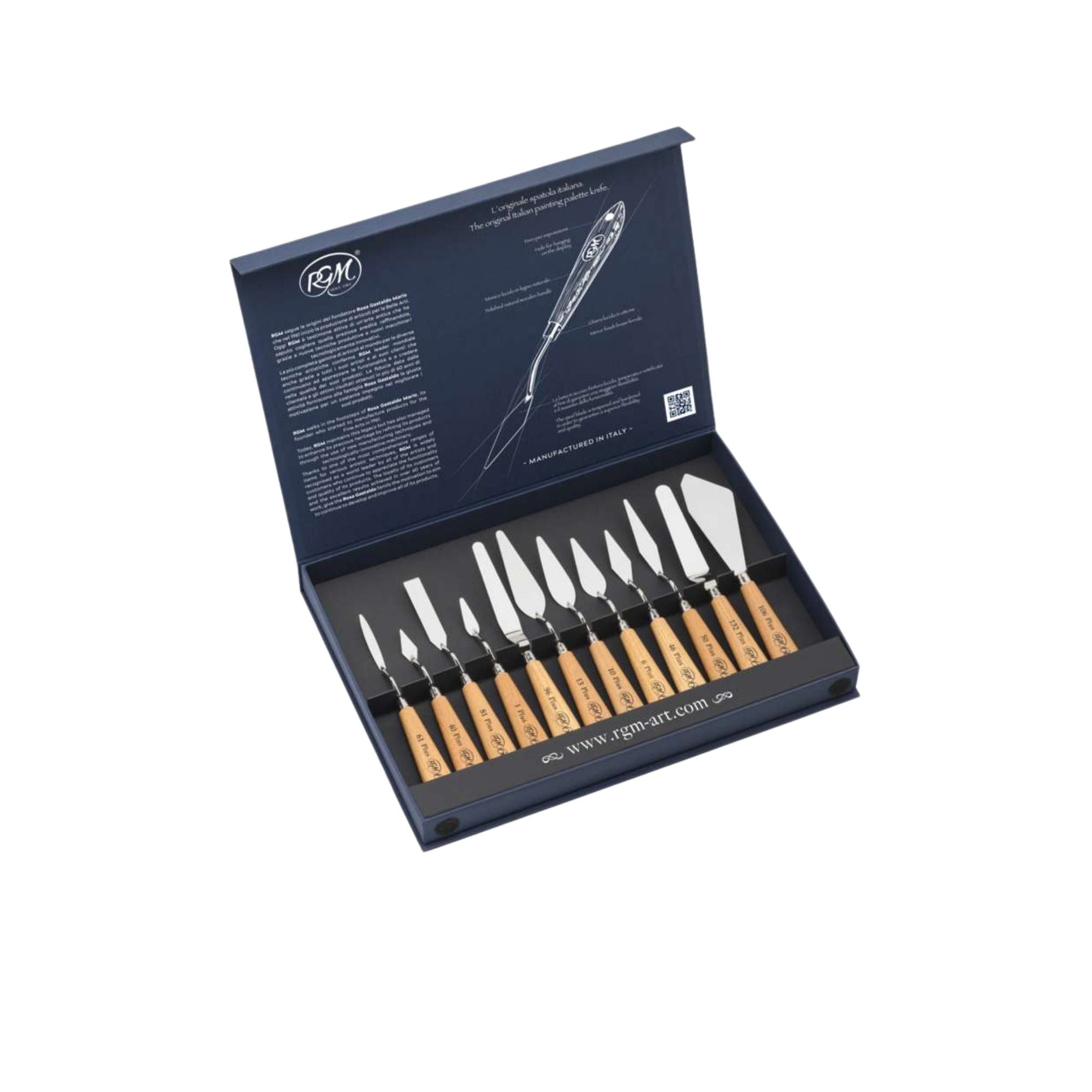 Honsell Malmesser Set 12-teilig mit Holzgriffen sind stabile Künstler-Malmesser aus Metall für Öl, Acryl & Spachteltechniken.