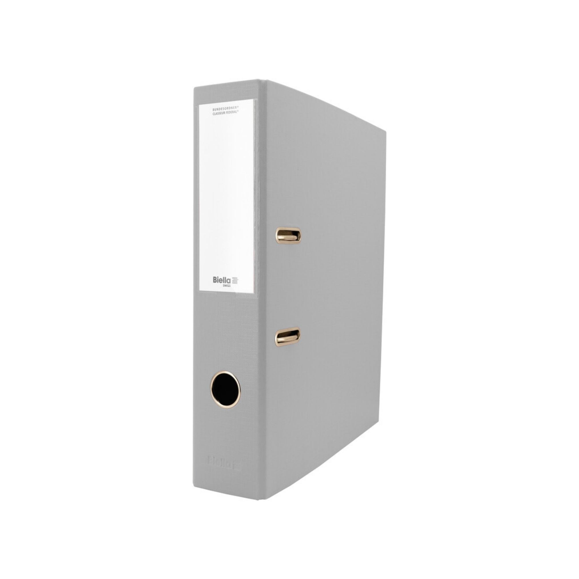 Decke aus stabilem Recyclingkarton mit farbigem PP-Überzug, Innenspiegel aus lackiertem, grauem Papier mit BIELLA-Logo bedruckt, Rücken mit aufgeschweisstem Klarsichtfenster aus PO und auswechselbarer Einschiebe-Etikette, mit Raumsparösen und Griffloch, starke Hebelmechanik Strong mit Tippklemmer, für 8 cm Lochabstand, für Format A4. Nachhaltigkeit eco:plus: recycelter Bestandteil. Zertifikat: FSC.