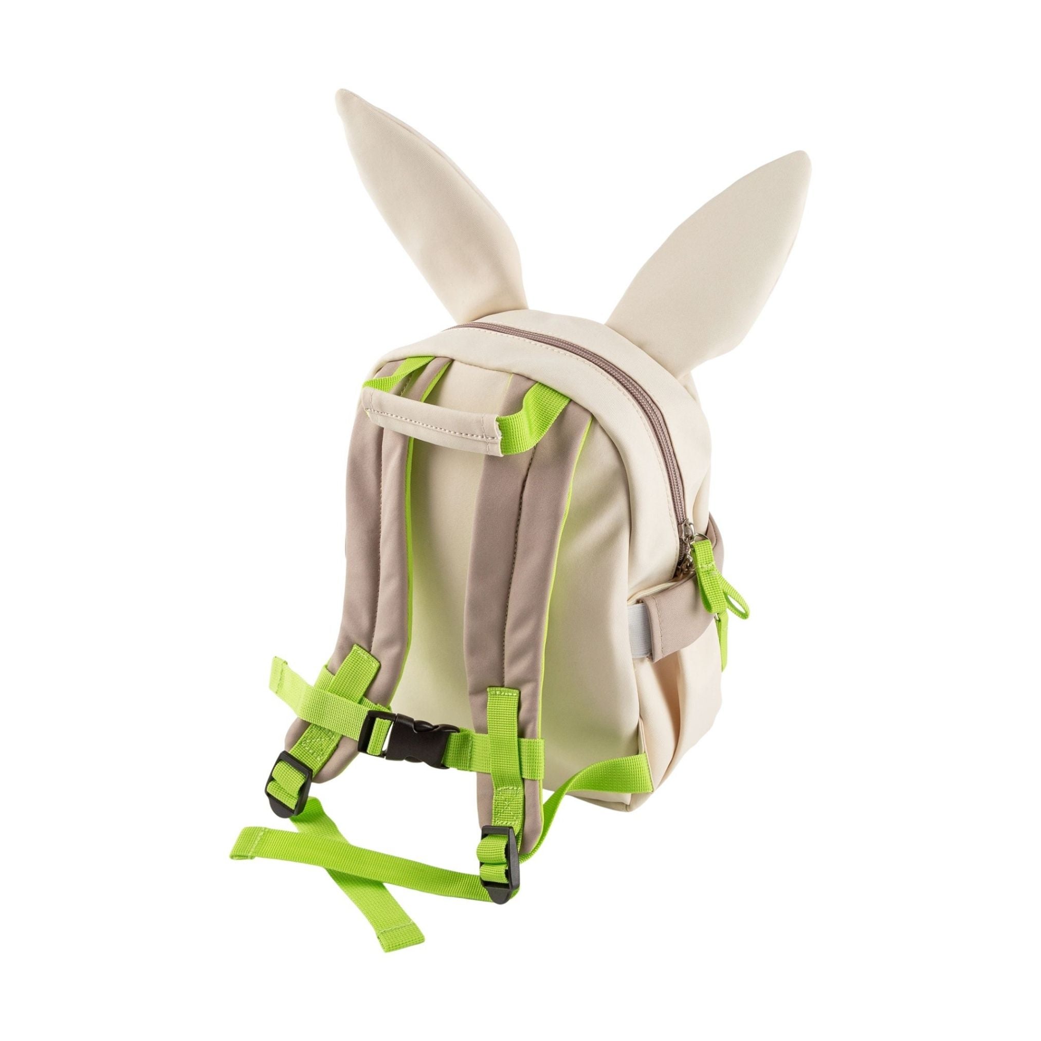 Weicher, kindgerechter Rucksack mit fröhlichem Hasen-Design in frischem Grün